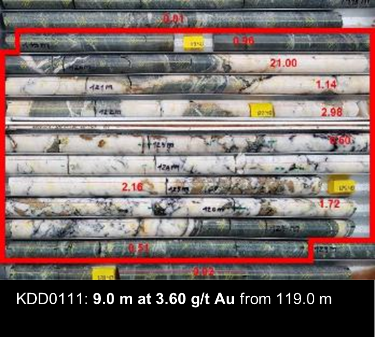 - 9.0 m at 3.60 g/t Au from 119.0 m (November 30, 2025)
