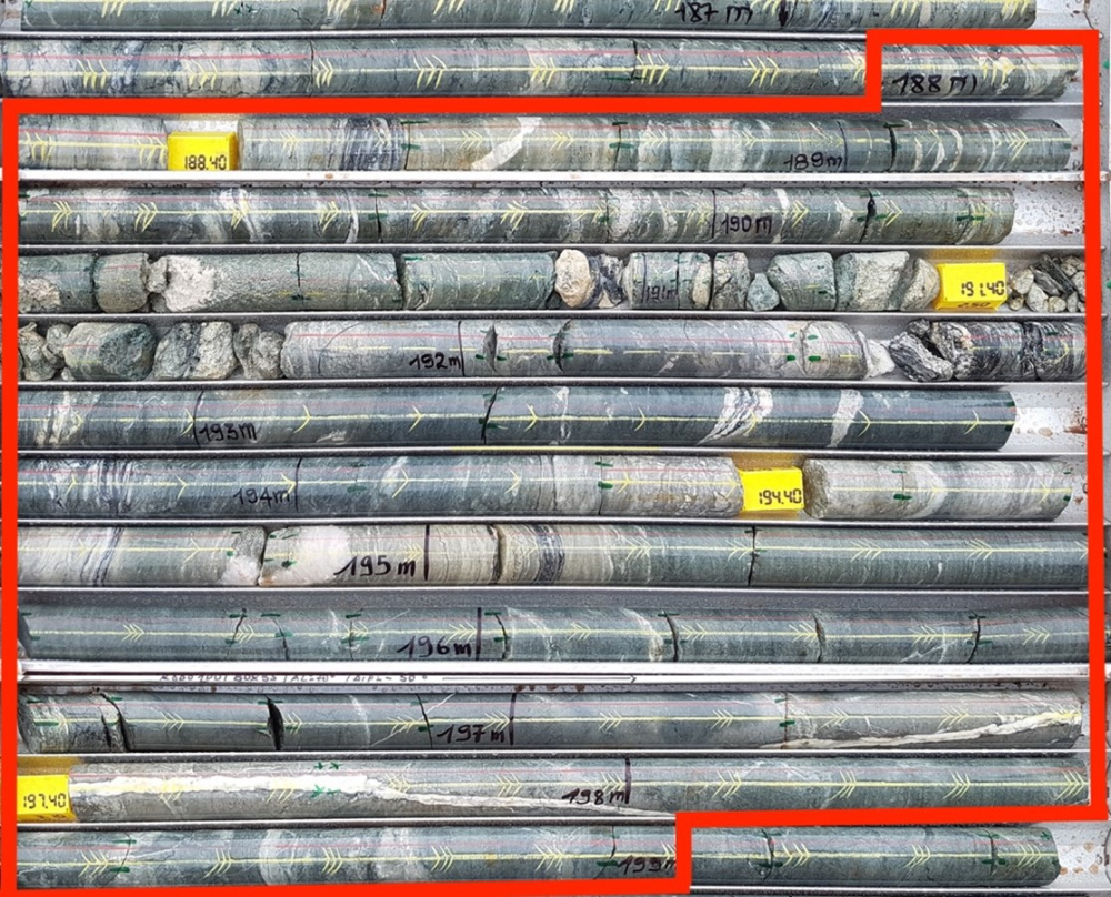 Figure 5: Mineralised Intercept from KDD0100 – 11.0 m at 1.26 g/t Au (188.0 to 199.0 m)