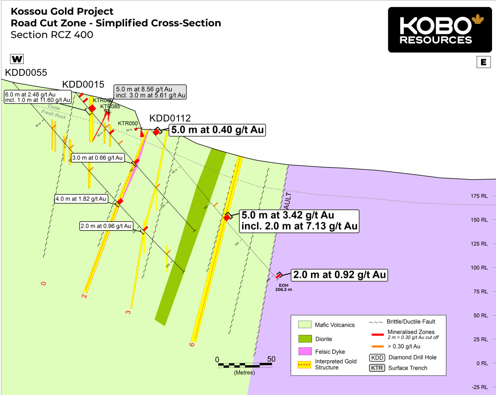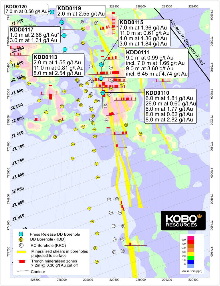 Kobo Resources Strengthens Gold Mineralisation at Kossou Intersecting 9.0 m at 3.60 g/t Au and 8.0 m at 2.54 g/t Au